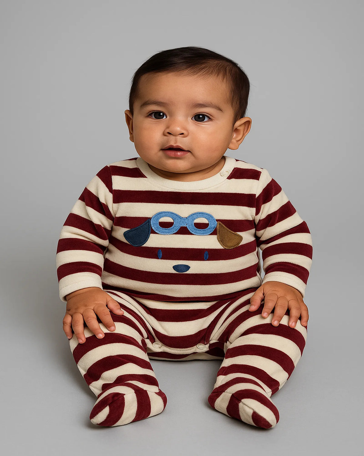 Preciosa pijama (pelele) a rayas con polainas (piecitos), es divertida por sus colores y diseños de planetas. Cuenta con broches laterales para una mayor facilidad en la postura.